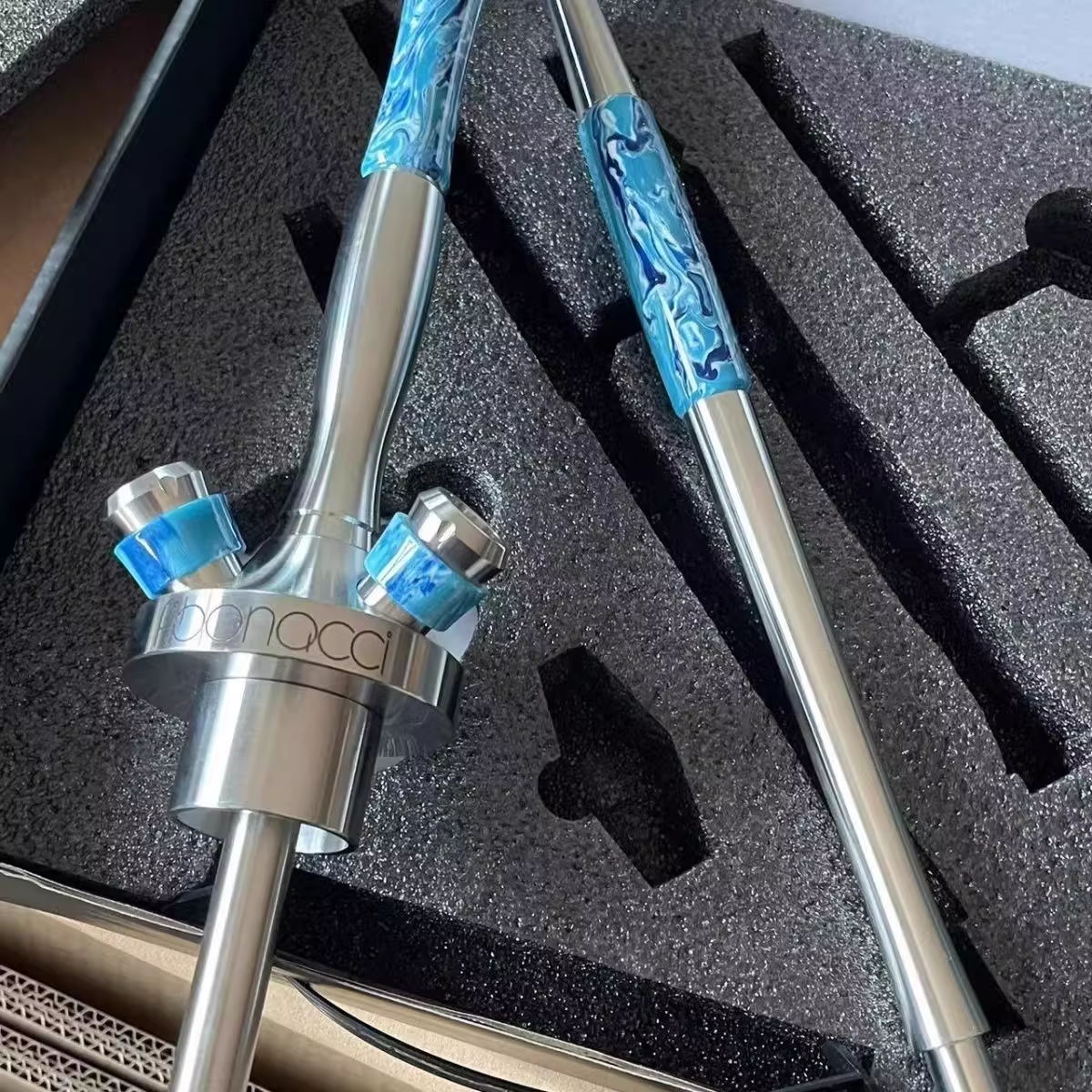 The Fibonacci is the latest creation by the Russian manufacturer Union Hookah. This time Union Hookah has set out for a completely different from what we’ve seen from Union previously. This hookah stands at approximately 56cm and includes un-screwable diffuser. Made from stainless steel with acrylic, stabilized wood, laminate, and resin.